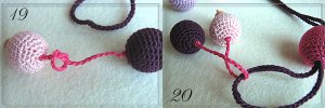 Расход примерно – 1 моток ниток на бусину 25 мм или из 2 моточков - 3 по 20 мм, или 2 бусины 14 мм из 1 мотка (тут может чуть не хватить, смотря какая плотность вязания). На шнур уходит 2 полный мотка. Но все равно мне приходится докупать нитки пару раз - придумываются бусики в процессе.