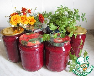 P.S. Из указанного количества ингредиентов получается около четырёх литров заготовки. Хранится борщ очень хорошо. Я храню в прихожей.