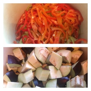 Баклажаны режем достаточно крупными брусочками (кожу не снимаем). -
