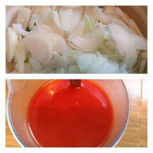 В 1,5 л воды разводим томат пасту. Если хотите, можете пропустить помидоры через соковыжималку, чтобы получилось 1,5 л сока. Я люблю именно с томат-пастой.