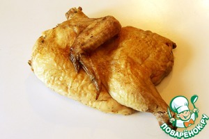 Это закусочное мясное блюдо по своей сути близко к ветчине, пастроме, буженине. Только готовится оно из курицы - домашний вариант хорошо знакомого по супермаркетам "цыплёнка копчёного". Для тех, кто предпочитает домашние деликатесы магазинным.