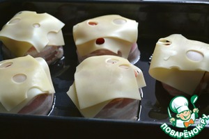 Всю эту красоту накрыть тонким ломтиком сыра.
