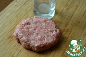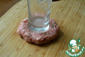 Ровно посередине мясной лепешки поставим стакан. В данном случае