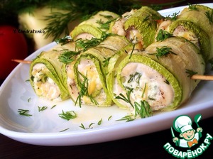 Рецепт «Кабачковые рулеты с курицей и сыром»: