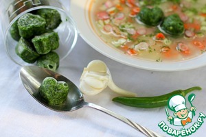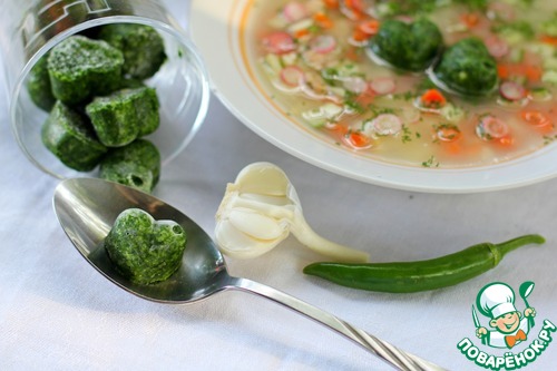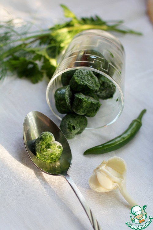 У каждой хозяйки свои секреты! У меня летом всегда, в морозилке, заготовлено несколько форм с зеленым льдом. Эти маленькие ледышки являются отличным дополнением к окрошке, когда хочется похолоднее. А ещё секрет в том что мои мужчины - отец, муж и старший сын любят поострее и такая заморозка помогает мне приготовить одну окрошку на всю семью, а при подаче подперчить сильной половине. Кстати, зелёный лед отличная заготовка на зиму, прекрасно подойдет и к борщу, и к картошечке.