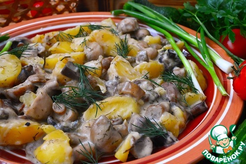 Вкусное, шелковистое жаркое. Если вы стали счастливым обладателем грибного лукошка, обязательно опробуйте рецепт!