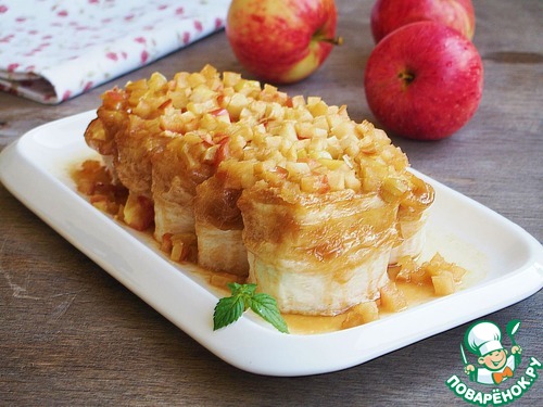 Рулетики с творогом под яблочной карамелью