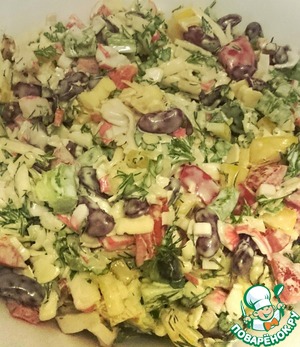 Перемешиваем, заправляем майонезом и солим по вкусу.