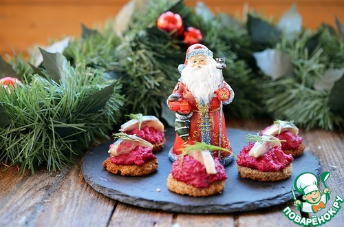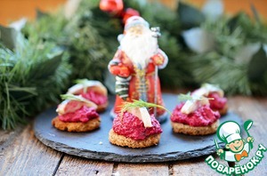 Рецепт «Гренки со свекольным муссом и сельдью»: