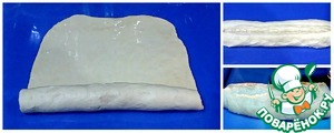 По истечении времени тесто обмять, разделить на две части и каждую раскатать прямоугольником (~20*30). Обмазать оливковым маслом, свернуть в плотный рулет и положить швом вниз на силиконовый коврик (или пергамент). Сверху вдоль сделать один разрез и убрать в теплое место на 30 минут.
