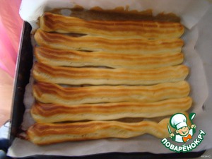 Подготовленное тесто кладем в кондитерский мешок и отсаживаем из него пальчики. Ставим в хорошо разогретую духовку на 20 минут, выпекаем при температуре 200 градусов