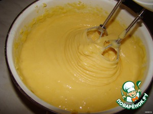 Заваренную массу охлаждаем примерно до 80 градусов, после чего в массу, помешивая, в несколько приемов вбиваем яйца.