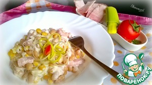 Это простое в приготовлении, но очень вкусное, нежное и, несмотря на минимум ингредиентов, сытное блюдо. Вполне полноценный ужин. Мне очень нравится этот рецепт, готовила бесчисленное количество раз. И даже кукуруза, которую я люблю только в первозданном виде, а не в салатах и супах, вписалась идеально! Пожалуйста, заходите, вдруг пригодится!