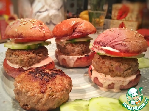 Осталось пожарить и сервировать, как вам угодно. Мой мальчик маленький любит мамины гамбургеры...