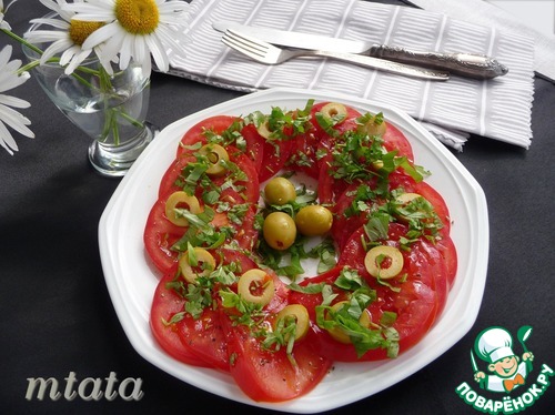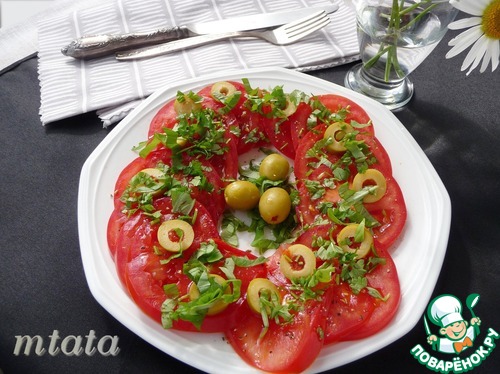 Предлагаю легкую летнюю закуску карпаччо из помидоров. Самый простой способ приобщиться к традиционной итальянской кухне. Идея взята у Алексея Онегина, спасибо автору.