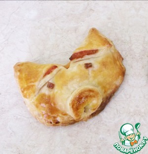 Нам понадобится только слоёное дрожжевое тесто, колбаса, одно яйцо и немного фантазии