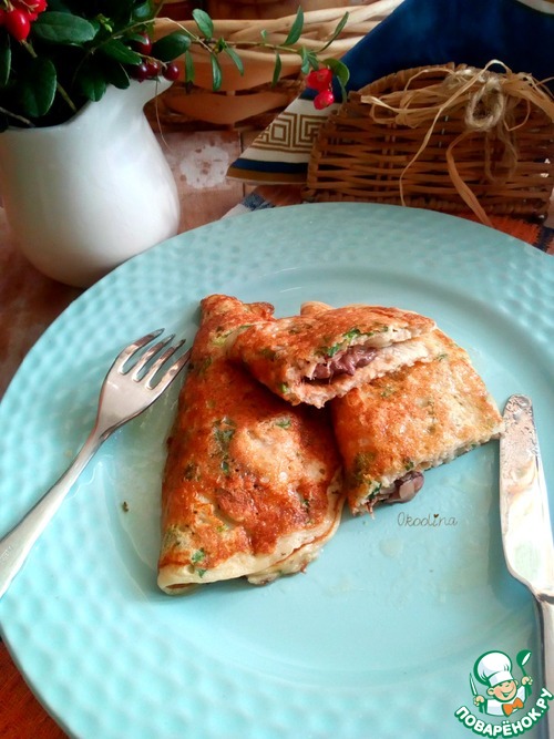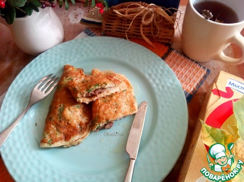 Овсяные блинчики с припёком из зелени: петрушки, укропа и зелёного лука. Фаршированные обжаренными маслятами с репчатым луком в сливочном масле. Доброе утро рабочей среды!!!