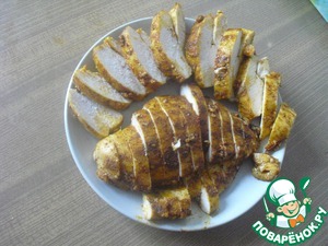По истечении 30 минут грудку достать и поставить в разогретую духовку до 200 градусов на 15 минут. Через 15 минут духовку выключить и не открывать в течение 6 часов. Приятного аппетита!