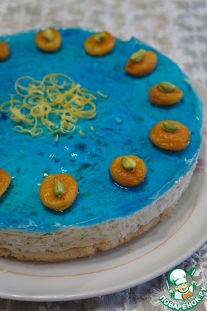 Я еще решила украсить сверху желе. Взяла бесцветное и подкрасила его сиропом кюрасао.