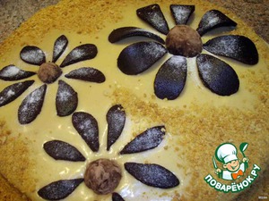 Бока тортика посыпаем измельченными обрезками. Украшаем по желанию. У меня цветочки из маршмеллоу. За что отдельное спасибо Лейлочке - это она меня заразила цветочками. Рецепт здесь http://www.povarenok .ru/recipes/show/442 1/