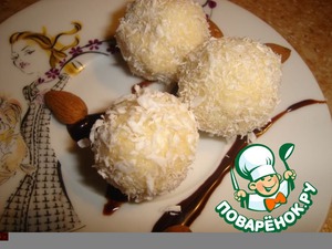 Готовые конфеты остается только обвалять в кокосовой стружке и выложить в красивое блюдо!