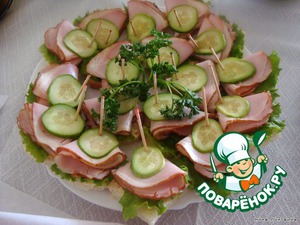 Список традиционных для фуршетных, и не только, бутербродиков продуктов и фотографии, на которых не процесс использования этих ингредиентов, а канапе, бутерброды и закуски, в том числе и из не заявленных продуктов. Так яйца, явно фаршированные и не используются в канапе, а идут как самостоятельная закуска, но при этом ничего не говорится об этом. Колбаса так же не один сорт использовалась. Думаю, что было бы правильнее, если бы автор рецепта возле каждой фотографии написала бы пояснения по составу и по изготовлению. А так - это просто набор фотографий по оформлению фуршетного стола.