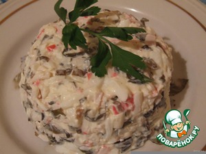 Предлагаю еще один вариант салата из крабового мяса или палочек. Вроде бы такого нет на сайте. Салатик получается очень вкусный.
