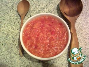 А зимой такую баночку открыла, добавила перекрученный чеснок и хрен и немного уксуса. Не совсем такая, как со свежими помидорами. Но все равно - очень вкусная. И надолго много места в холодильнике искать не надо
