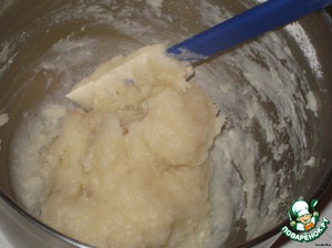 Тесто может быть с комочками, поэтому нужно растирать лопаточкой до однородной гладкой и вязкой массы.