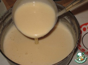 Консистенция теста должна быть чуть гуще, чем на обычные блины, если что, добавить воды, примерно 50-70 мл.