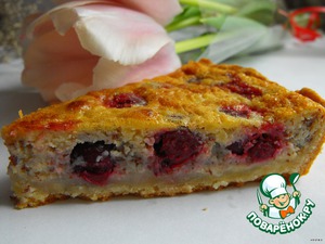 Равномерно распределяем тесто в форме, делая бортики (~3 см). На тесто укладываем вишню (в оригинале - сливы)