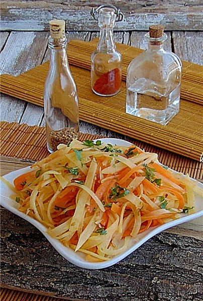 Кажется, я тогда картошку недоварила, а может, так и надо. Но когда он чуток настоялся - получилось вкуснейшее блюдо, такое необычное лично для меня, остренькое! Текстура картошки непривычная, но получилось вкусненько. Повторять буду точно)