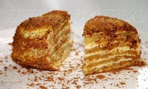 Коржи получились воздушные, крем - выше всяких похвал. Делала на Новый год, половина гостей сказали, что крем из сгущенки, другая - что из сметаны.