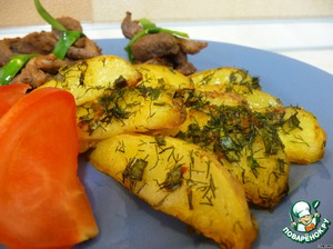 1. Картофель хорошо промыть (очищать не надо), нарезать вдоль на восемь долек (разрезать на половинки, затем на четвертинки и т.д.).
