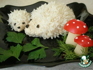 только рисинки не хотели держаться на ежике, пришлось очень аккуратно перекладывать на тарелочку...может от того что рис пропаренный был?
