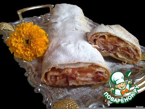 Очень быстрый и вкусный штрудель. Пригодится на случай нежданных гостей... Не составляет никаких материальных затрат... Время на его приготовление тоже минимально... Все эти его достоинства ни в коей мере не сказываются на вкусе - напротив, это очень нежный и приятный десерт, который порадует даже очень занятых хозяек!