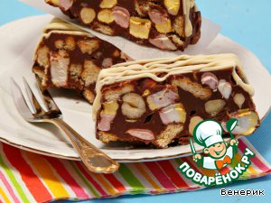 Добавить в смесь орехи, измельченное печенье, нарезанное маршмеллоу.