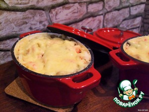 Поставить формочки в разогретую духовку на 10-15 минут (крышкой не накрывать), чтобы сыр хорошо расплавился, но не зажарился. -