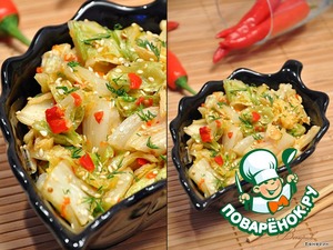 Кимчи (острая корейская капуста) Существует более 100 разновидностей кимчи, которые отличаются не только ингредиентами, регионом приготовления, но и временем засолки, а также, технологией приготовления. Для приготовления кимчи используют не только чеснок и красный перец, но и другие продукты: от самых распространенных до экзотических. Например, некоторые корейские кулинары добавляют в кимчи имбирь, семена кунжута, морковь, кедровые орешки, груши, каштаны, морские водоросли и даже соленые маленькие креветки и устрицы. Я готовила кимчи несколько раз по разным рецептам, но именно этот рецепт для меня оказался самым вкусным и простым. Рецепт взят из книги Ильи Лазерсона "Капуста на столе не пусто". Кстати, на днях мы ходили в гости, и я прихватила с собой эту капустку, скажу Вам честно - мировая закуска!)))