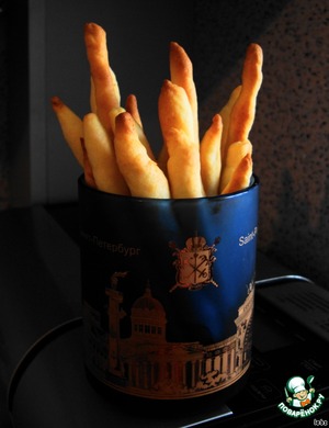 Сырные палочки получились совершенно случайно. Я хотела сделать творожное печенье, а творог пропал, вот и решилась на эксперимент... который УДАЛСЯ НА СЛАВУ!!! Очень вкусное печенье, хрустящее, пока свежее, а после хранения в холодильнике становится более мягким. В общем: пальчики оближешь! Очень вкусно с чашечкой ароматного кофе, ну, или с бокалом пива! Попробуйте - не пожалеете!