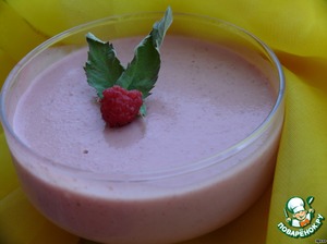 Творог протереть через сито (в оригинале был творожный сыр, но мне данный продукт недоступен))), взбить с сахаром и малиновым пюре в пышную пену.