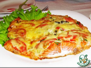 Нежная, ароматная семга под облаком из маслин, помидоров и сыра! Требует минимум времени и усилий в приготовлении и максимум удовольствия при поедании!