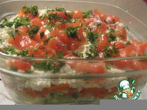 За огурцом - яйца и опять семга. Каждый слой промазываем майонезом со сметаной. Солим по вкусу.