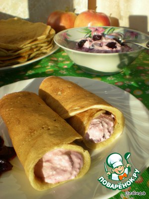 Рецепт «Ржаные блины с яблоком и творогом»: