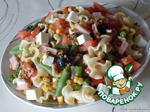 Много лет в моей коллекции лежат 2 или 3 рецепта салатов с макаронами, но я как-то не решалась их готовить. Не могла себе представить, как это: холодные макароны... с овощами... Но попробовала на ДР у дочки и просто обалдела. Это оказалась ТАКАЯ вкуснятина, не передать словами. И муж тоже был в восторге.