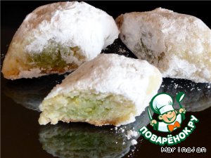 Тесто окрасится в нежный зеленый цвет / на фото не получилось передать зеленый цвет фисташек/.