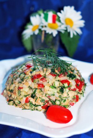 Описание: Это популярный итальянский салат из овощей и хлеба, который подают, как правило, в летнее время. Для салата берeтся зачерствевший хлеб. Немного истории... Этот салат родился на кухне бедных итальянских крестьян. Обычно в деревенских домах хлеб пекли один раз в неделю, и несвежий хлеб надо было как-то утилизировать. С приходом жары этот салат становился для крестьян основной едой. Чтобы прожевать его, особенных усилий не нужно, поэтому ее называли «стариковской едой». Есть несколько вариантов подачи этого салата на сайте. Мой вариант несколько отличен по ингредиентам и способу приготовления.