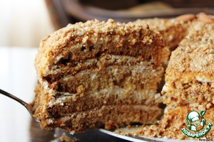 Тесто делается просто, выпекается быстро, крем самый простой – сметанный. Но вот результат… Очень нежный, ароматный пирог с медовой ноткой и ореховым послевкусием… Незабываемо!