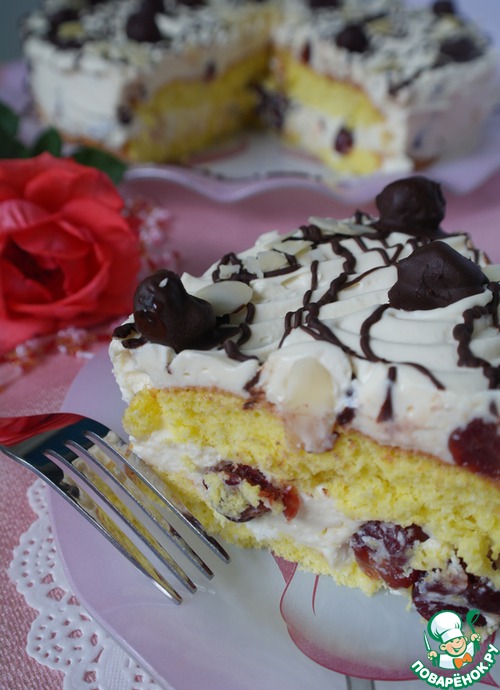 Ну вот и заканчивается сегодня моя «звездная» неделя. В последний ее день я хочу предложить вам бисквитный торт с творожным кремом и вишнями. Спасибо всем, кто поддерживал меня на этой неделе! Этот торт для вас!