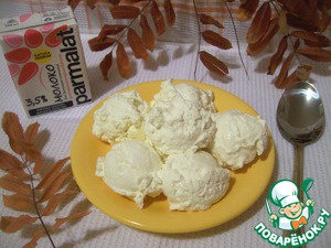 Выливаем молочко в кастрюльку (не эмалированную, во избежание пригорания во время нагревания). К сожалению, в наших супермаркетах я не нашла молоко от Parmalat в больших коробках, купила в коробочках по 200мл. Также выливаем сливки и выкладываем сметану, хорошенько перемешиваем.